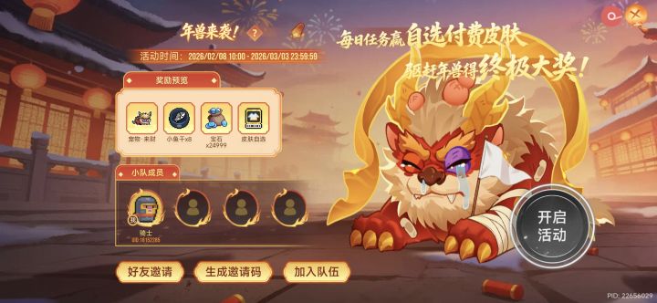 炮仗已备齐,就差你了!队伍ID: NBz2e32J0kz69j。噼里啪啦,年兽退散!
