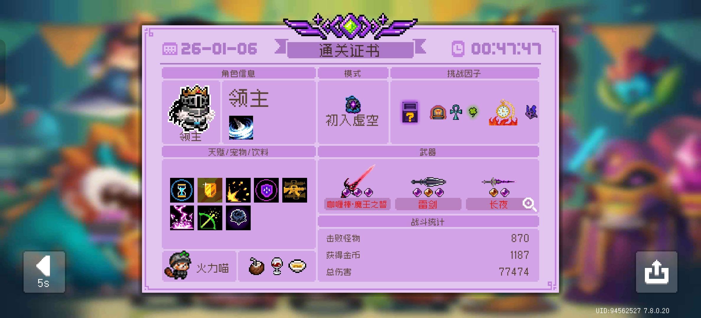 还记得自己闯普通关卡打败的第一个boss是曼陀罗花,还记得第一次闯过三大关(Boss是瓦克恩头目)时与小伙伴炫耀的时刻。转眼间已经过去了七年,中途辗转换了几次账号(这个新号从头陆续玩了两三年,感谢云存档!),始终不变的是热爱元气的心!从学生到准备参加工作,元气骑士一直在陪我慢慢长大,我也见证了它的不断向上。新年将至,我们的故事还在继续。祝愿2026年元气骑士越来越好,马到成功,祝各位元气友友们平
