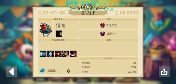 前期加的的天赋和食物主要是近战攻击,远程伤害数值并不高,但是可以明显看出游一加削你飞刀组合在刷小怪方面展现出的超常天赋,由于数值不足,所以在打夜游神时略显乏力,想用游侠通难度五可以试一试。#攻略#新手攻略#游戏攻略