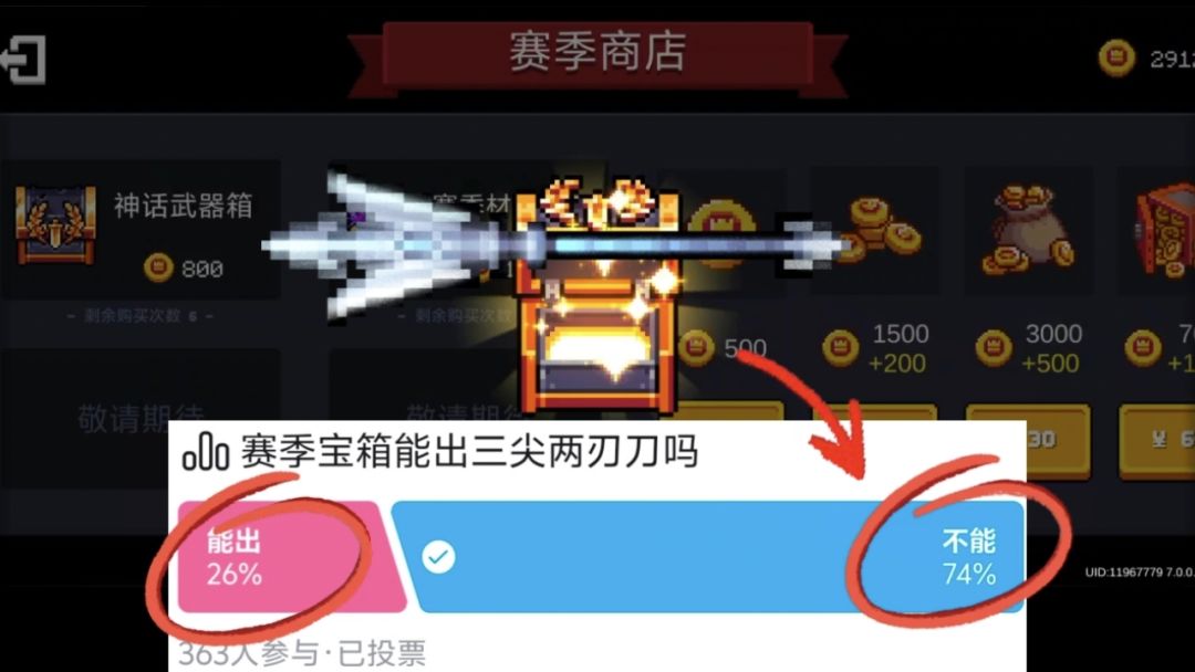 元气骑士玩家狂问:赛季宝箱到底能不能出三尖两刃刀?