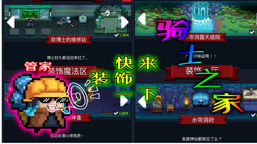 元气骑士:将骑士之家打造成水帘洞,太酷了