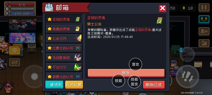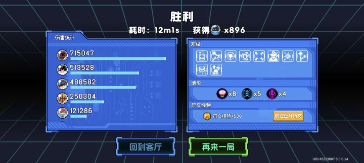 老话不多说了,依旧骑二配双持加特林,这次试了一下彩虹的,伤害还可以,但感觉没八分饱带派,但凉屋貌似又出bug了,我怎么同时拿了4把武器,我想称这个为(持续压制伤害流)如图既能有伤害,还有速度,蓝管够,按着就行,颗秒速通也是分分钟,配合骑二技能的详细作用,就能保证蓝量等同于无限蓝