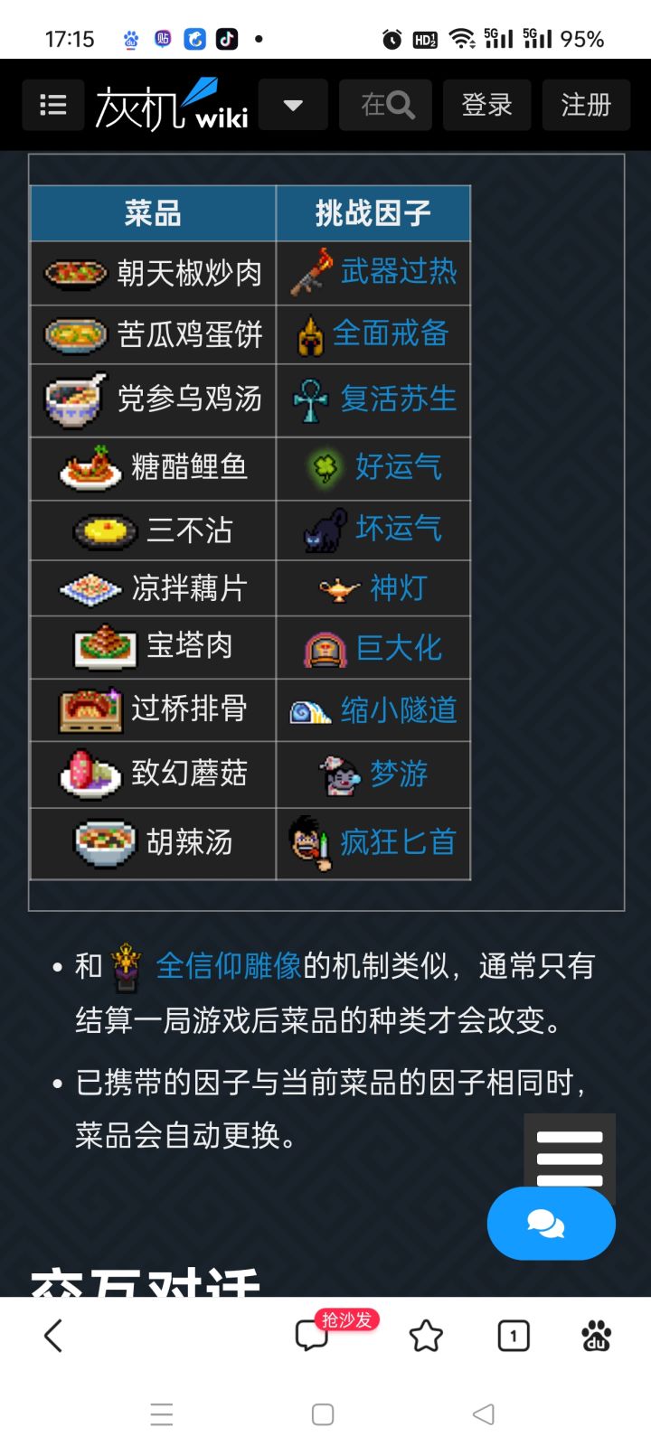 现在单人模式下,可获取的因子途径有:厨娘1个,兑换机1个,警官4个。也就是说,在单人模式下,可以带6个因子进地牢厨娘,如果没刷到你想要的因子,直接拿着厨娘刚给的因子,去战斗退出结算,主页面1-1结算后,下载回云端进度,再回去找厨娘给因子,重复上面步骤,直到刷出你想要的因子(见图1)警官,每日挑战是否有你想要的因子,如果没有,先个人速刷完成警官的挑战(可以不开炸天打的更快),完成后到警官领完奖励