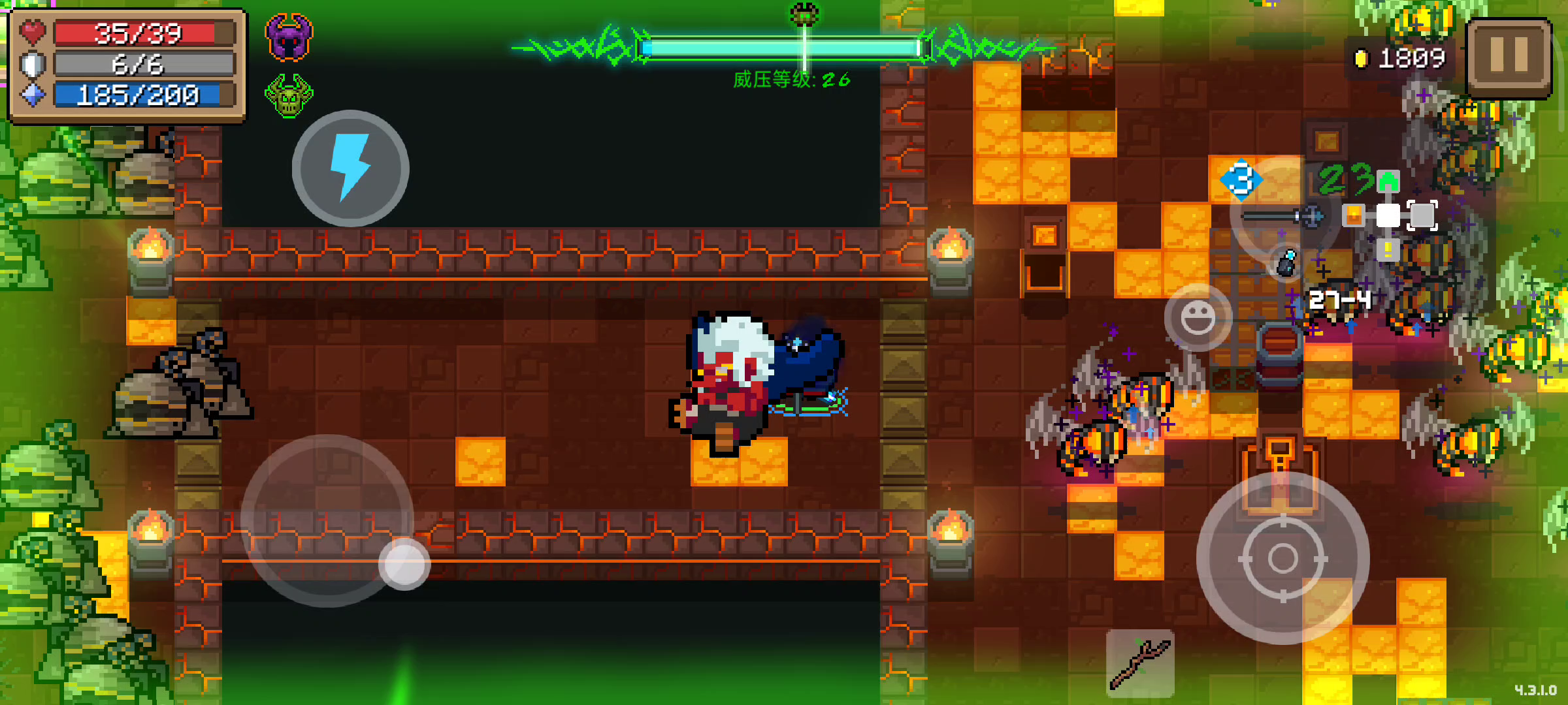 后面怪太肉根本打不动,而且都26威压了一直没遇到新的骑士拳和闪电法杖,伤害太低了,而且弹幕多到手机卡 最后29威压懒得打太刮了就结算了