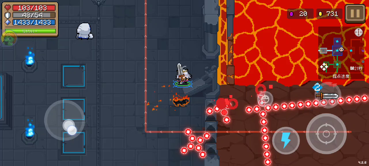 众所周知,攻速=快乐程度=受欢迎程度,所以用的是攻速加快,和血量越低攻速越高,武器升级到一定程度也会加攻速(可惜是蓝色的湍流),狂战士的攻速加快不知道是不是固定攻速(还没有尝试),芯片不知道有没有加攻速的。 tip:建议只带一个武器,2个武器容易卡蓝 另外有bug,不知道是不是因为进入火箭之前是5层,打典狱长虽然显示是0层,但是攒了一次就5层了,以及刚进来我的气宗是白色的?
