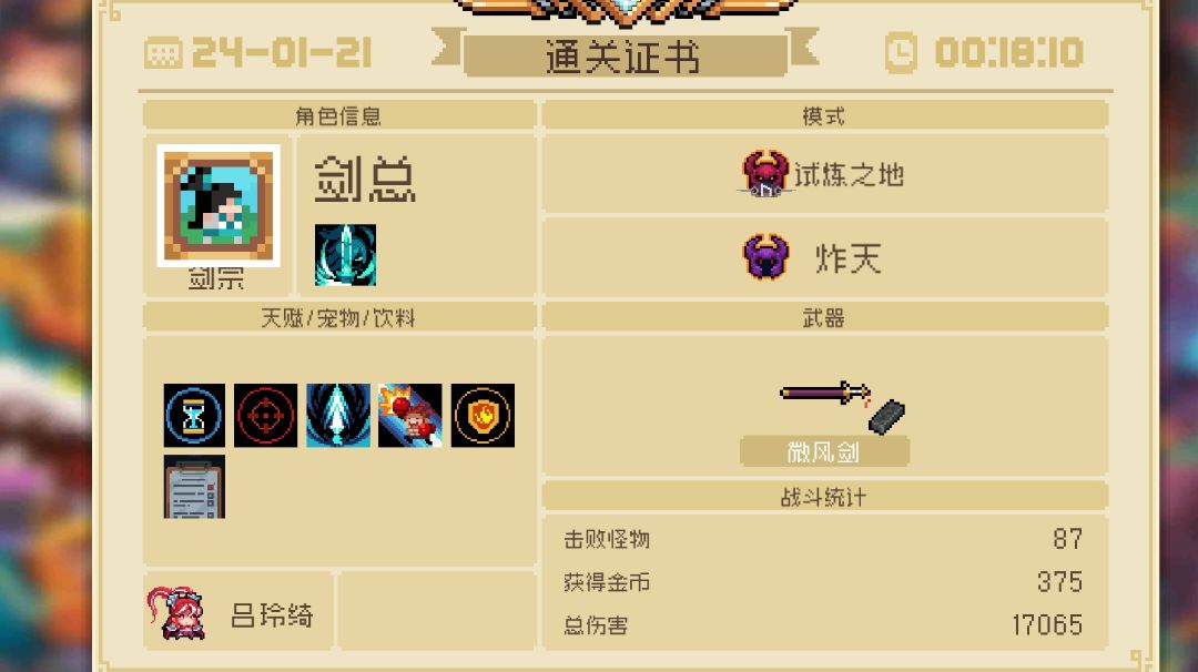 全过程的录像 没啥技术,献丑献丑,这把运气也比较好。 有些地方失误和贪刀还是蛮明显的。 也不止一次打到过3-4,但有时候遇到的boss、天赋运气极差,导致浪费很多时间/输出不够,甚至出现过超时的情况…… 祝大家都能把自己喜欢的角色玩的顺风顺水!