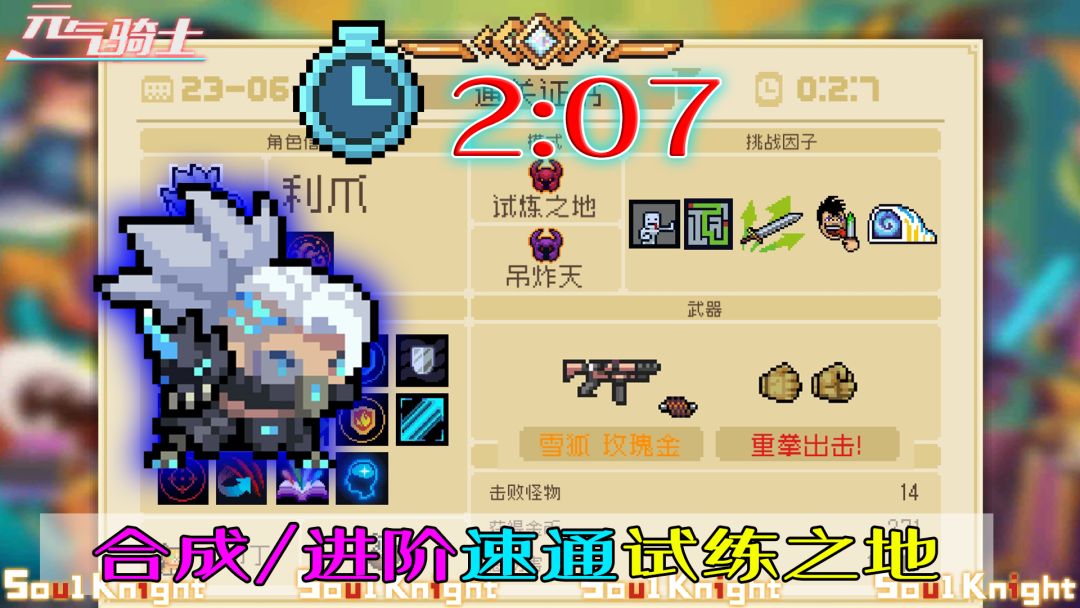 进阶/合成武器速通,本次小伙伴选择的是既可以进阶,又可以合成获得的雪狐玫瑰金,技能选择的居然是基本在速通场上没有露脸过的狂战士散打技能,不过这样就缺少了技能移速加成,只能通过因子和武器等来提高跑路速度了。整体上还是有点失误,不然还可以快个10秒钟。#宝藏游戏安利派对#元气骑士