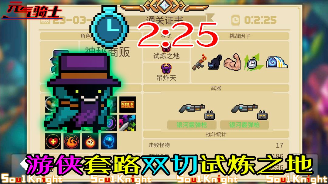 游侠速通试炼之地还是非常爽的,居合斩直上就可以了。本次要求最强的枪类武器,不过武器里霰弹枪仅能使用白色和绿色的,到头来还是霰弹枪占了大头,可见霰弹枪对于速通试炼之地来说还是非常给力的。#宝藏游戏安利派对#元气骑士#元气骑士上架了!