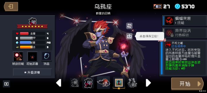 教你们怎么卡,解锁选择三技能或者二技能或者一技能之后,一直切换皮肤,就能卡了,点击开始的时候是先一个黑墙再到骑士角色,这就说明卡成功。每到一层地牢点一次技能,技能效果一直存在