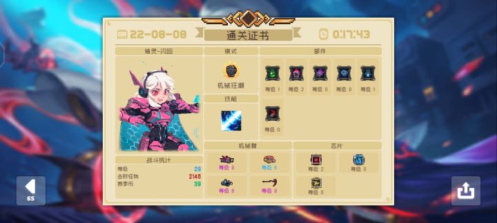 打最后一个boss的时候,躲不掉弹幕就顺着履带下去,下去后打头上冒红光的小怪不然怪物只会越来越多,打完小怪后再回到boss界面时,你可以攻击但boss要等一下才攻击,最后是别堆太多生命值300多就行了,这玩意掉下去时直接便到机甲原本的血量,主要是攻击,攻速,蓝量回复,减伤,蓝量回复和攻击最重要,主武器升满,尽量是攻速较快的武器,打5个小boss时最好在前三个就把祖蓝和轰炸机打了,这两都有追踪技能,还有尽量把红色芯片升满,这个攻击加成还是很高的
