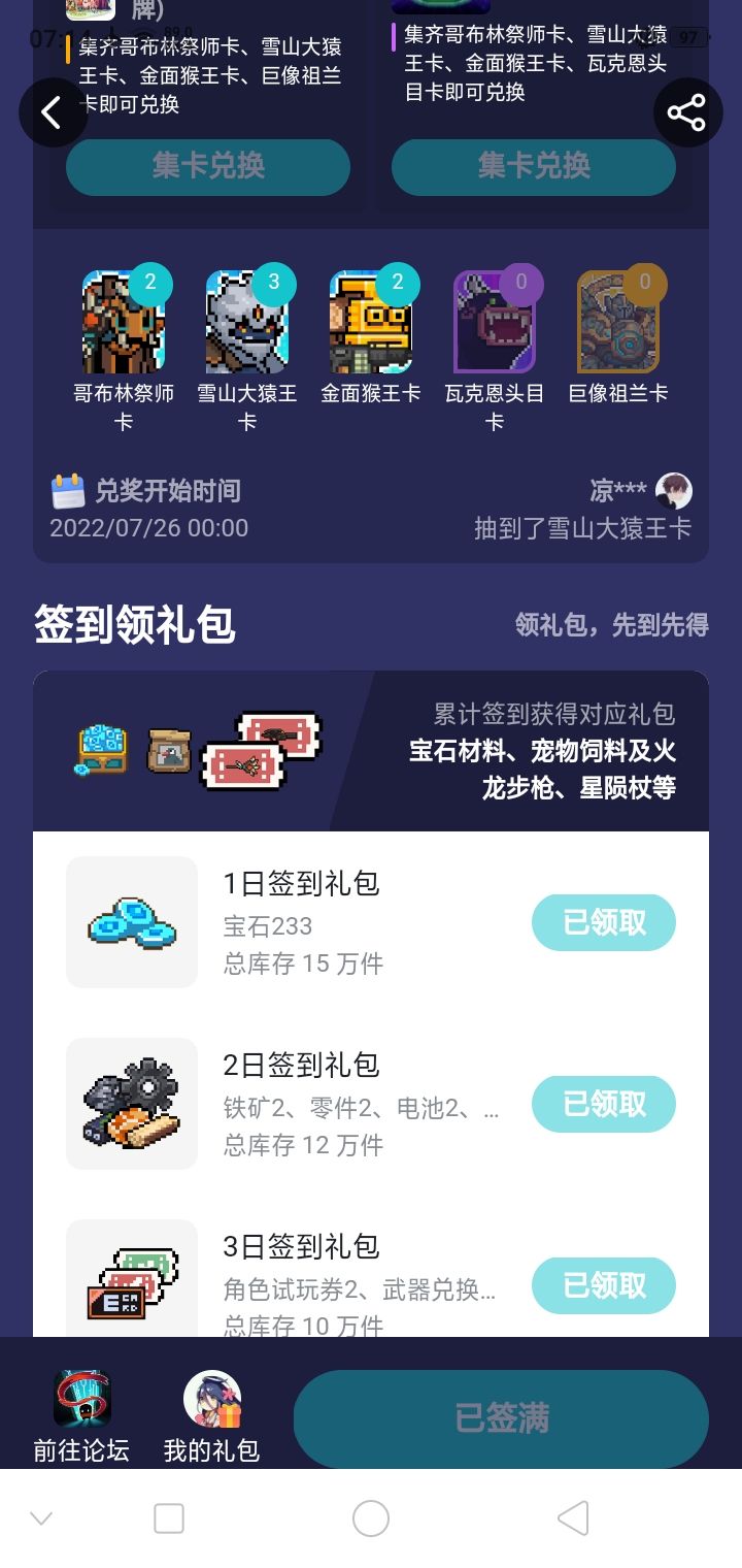 签到集卡牌兑奖奖品有数量限定吗(别人兑换光了就没了),还是说只要有就可以兑换,不会别抢光?