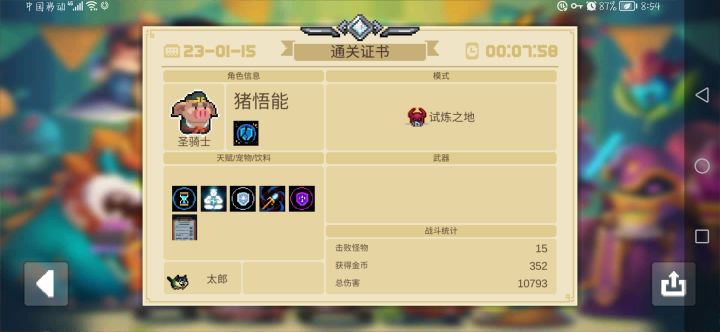 首先在应用市场下载自动点击器,如图这个是免费的,但是开启之后无法移动,所以基本只适合打迷迭岛。使用自动点击器进入迷迭岛后,选择空手能力为光波的角色。开始游戏后尽量选择一些增加远程攻击及生命值上限的食物。进图之后找个好位置开点击器然后看着就行了(注:这个方法在11、2难度可以几乎无操作通关,但在难度3就需要时不时关点击器躲子弹所以建议大家在难度2使用该方法)最后,祝大家成功刷出金奖杯!!!٩