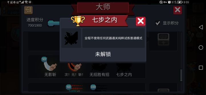 哪位大佬解释一下啊,我没带武器通关啦为什么没给成就