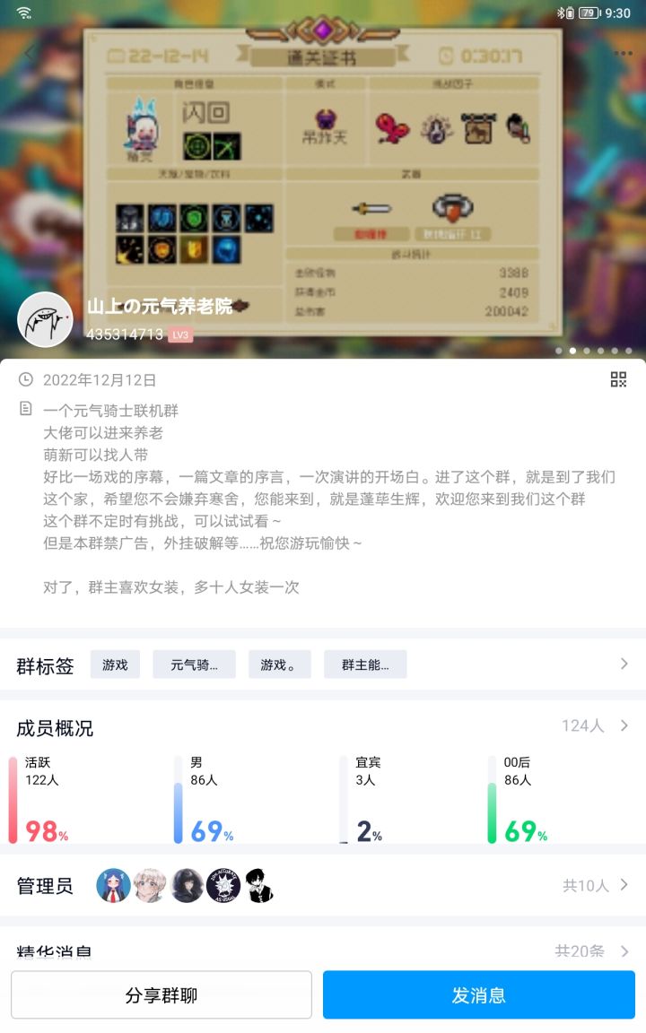 这是一个不怎么火的群,人数50以下(2022.12.30的时候),有人开车,也是一个闲聊群。QQ群号:723831526。进群的一定仔细看群规,想退出的可以退出。#元气骑士
