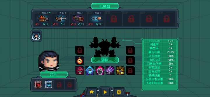 能帮我看看这配置为什么从十几级之后拿零件也不给我升级武器和技能(天赋?我不知道中间围着那一圈叫什么😂😂)拿着这配置去打典狱长真的太累了!还好典狱长难道降了还想问个问题,怎么样才能拿4个以上的武器,和中间那一圈锁住的地方怎么解锁呀?😁