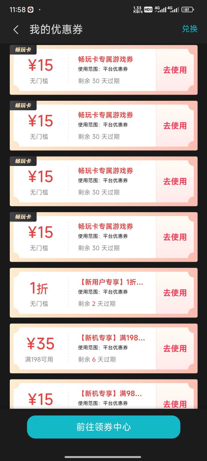 我在渠道服领到了这个卷,我属于那个偶尔玩一下的人。一个月可能会上一次线。完了领到这个卷,看了一下我玩的游戏也只有元气骑士在渠道服,我本着不浪费的原则就想把这些卷充这游戏里。