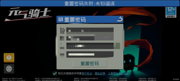 元气骑士重置密码失败