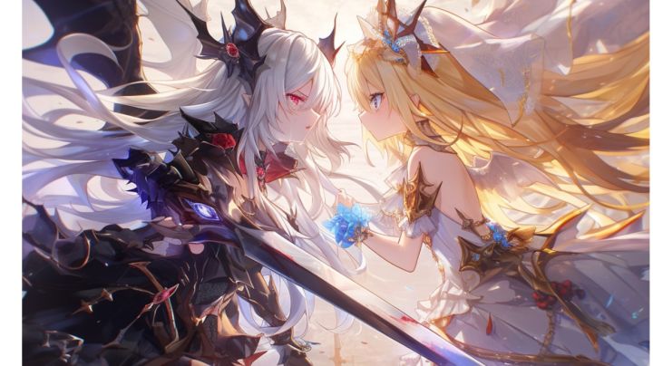 月光淌过破碎的彩窗,在教堂废墟上织出蛛网状的光痕。 莉莉娅握紧白银十字架,看着祭坛前哼着歌调酒的银发少女——赤瞳倒映着血色酒液,哥特裙摆下伸出的小腿白若凝脂。 “我是以太教廷第三十二代圣女莉莉娅。”牧师法袍无风自动,“肮脏的异端,你逃不掉了!” “停停停~” 吸血鬼晃着高脚杯打断吟唱,鲜红指甲轻点大理石台面,她打了个哈欠: “四百年来第七个说这话的圣职者,骨头都烂在玫瑰园东南角第三棵树下