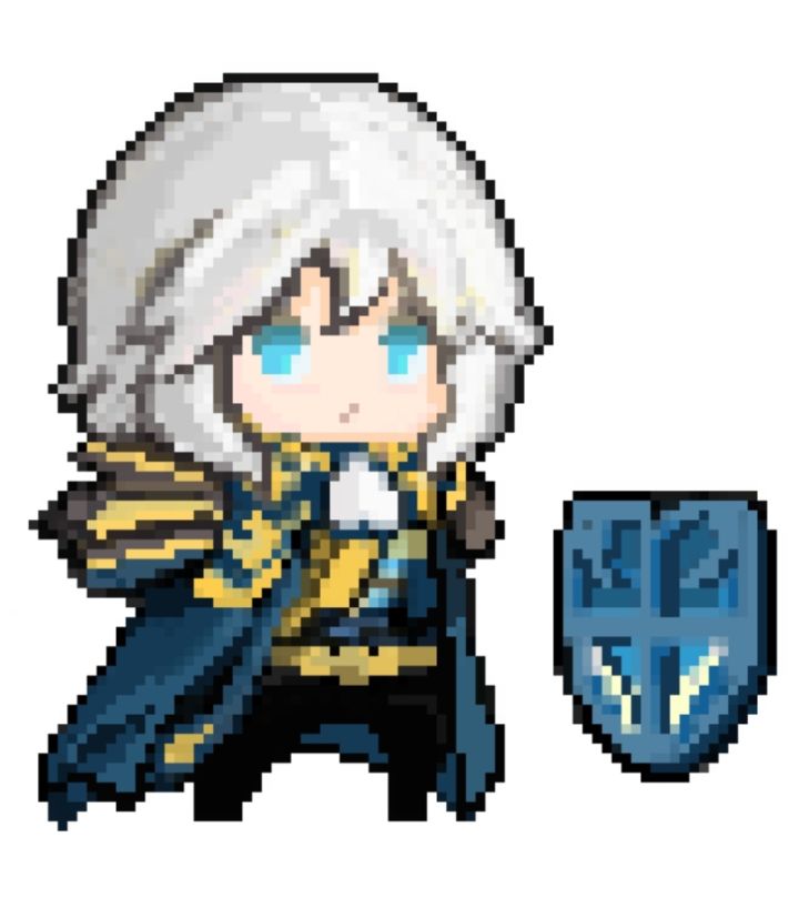 咒法骑士的机械狂潮皮肤,武器的话改成一把狙(关于后边内容,只是因为他是我最早在像素射击中的创作)唯一的改动是,一技能所发射的能量球变成了无人机,近战攻击变成了用两把匕首各挥砍一次,激光颜色改成绿色就行了,二技能的范围图,变为一个持续向周围扫描雷达图案,当然说了这么多,纯粹是因为我懒得画像素画,今天刚把立绘画完,就不想动了。