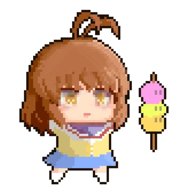 自制角色【话剧部长】“天然呆,性格比较内向。总是替他人着想,对任何人事都真诚以待,说话总是用敬语。为人既温柔又坚强,在“团子大家族”的话题上,会突然变得侃侃而谈。为了梦想而不懈奋斗,执着中有着小小的倔强。一开始很不自信,常因一点小事而犹豫不决,这种性格也使得她在学校中很难交到朋友,但在与朋也等人的相处中获得的鼓励令她得到了勇气,慢慢地变得自信并开朗起来,也收获了不少朋友。”武器:团子大家族棒