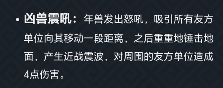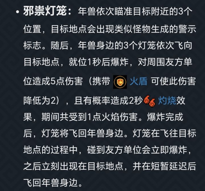 我设计了 年兽的专武,由于目前手枪类武器比较冷门,因此把年兽的专武定位于手枪类。鉴于年兽是近战 远程均有的boss形态,设计为手枪—左轮。 名称 :庆福左轮(红武品质) 蓝耗量:x点 伤害:x点 手枪的攻击方式必须最大程度还原boss的部分攻击方式。 1、分散射击(来自图一) 手枪连续射击,每次向三个方向发射x颗子弹(x点伤害/颗),子弹能穿透敌人并拥有两次初始反弹力,只有中间的子弹处