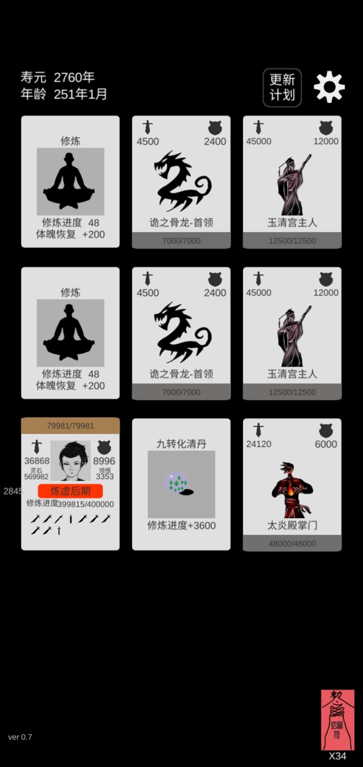 经验满了之后在吃经验会卡,只能打怪和吃领悟,而且后面没有了功法和武器