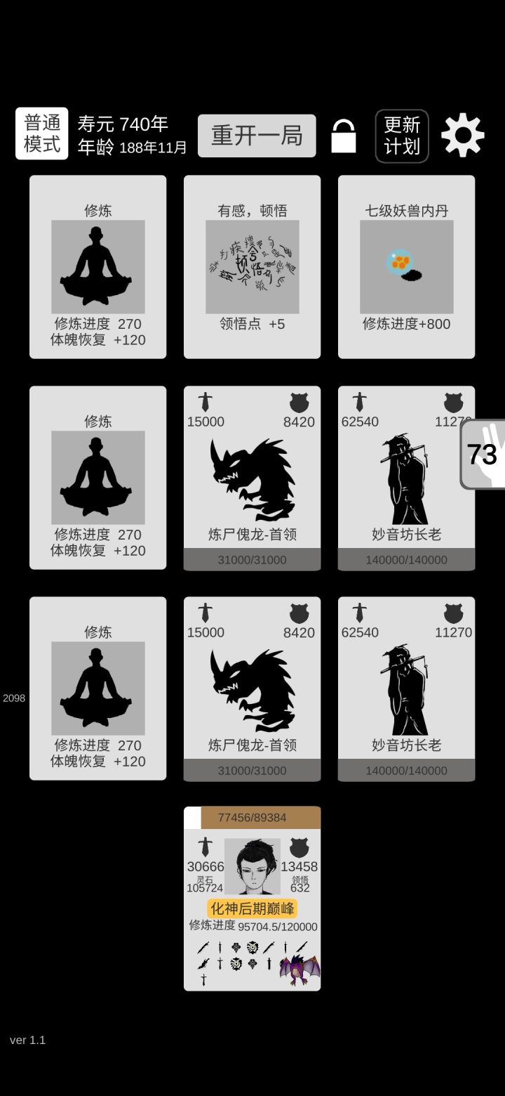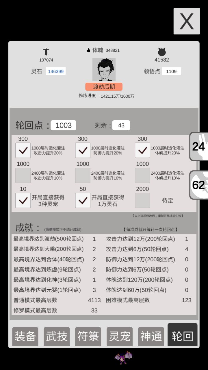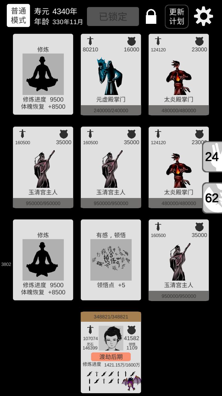 有点玩不懂这游戏,普通模式这配置,到了化神中期就基本谁都打不过了,而且基本没啥提升属性的方法了,要咋打