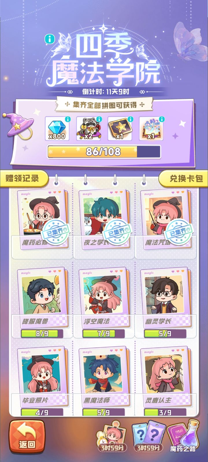 #四季合合 换卡片啦!目前已经有四季合合的换卡群了,有需要的留言哦!目前第一站缺79;郁金香丛缺8;去野餐缺79;烟花告白缺569;下午茶缺4568!
