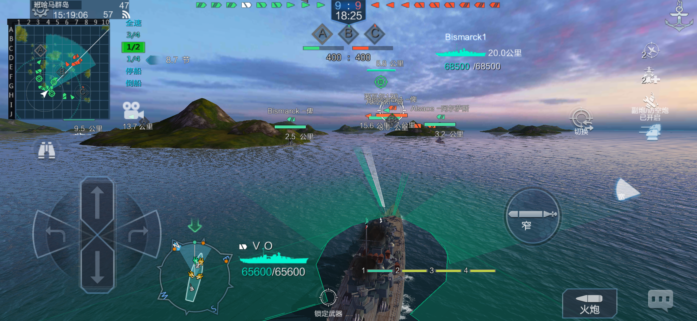 前置水下鱼雷射界其实只到这里鱼雷射界显示成了交错区域瞄准这里的时候应该切换到中间的鱼雷发射管,结果没有,而且水下鱼雷管打不到这里到了这个角度才能发射鱼雷