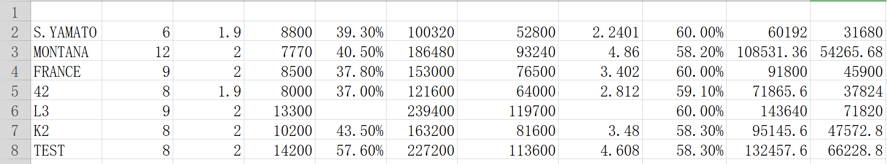 被点火率取50%,命中率上,用的是TNT的3205场42的59.1%和1327场大拿的58.2%,K2用的是我的也就是陌上1788场G3的58.3%,其余顶级战列取60%,如果有千场以上的超大,法兰西和L3的也希望大佬们给个数据。前为DPM,后为DPH,能看出理论输出上大拿依旧遥遥领先,但是口径也是最小的。K2表现尚可,HE介于大拿和法兰西之间,二型炮输出真的夸张,领先大拿很多。在输出上,K2的平