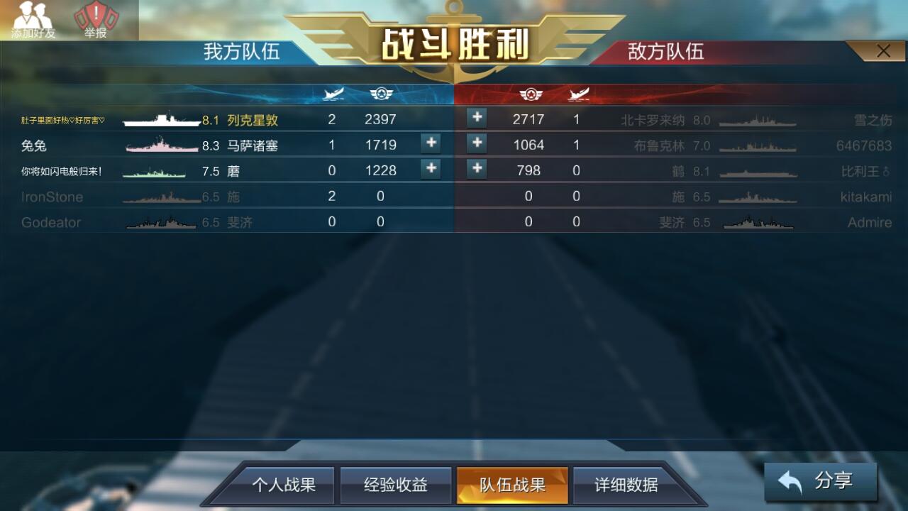 吐槽一下刚刚开的一局排位,两个2234拼命往后跑,我们怎么说都不肯听,明明能赢的硬被拖输,极限射程一动不动打狙,一发都没中,对面2234和巡洋冲到脸上了有个2234还不打他们,一直打21公里外的敌人,被说了一顿后终于打近的了,结果13公里左右还基本全空全跳。