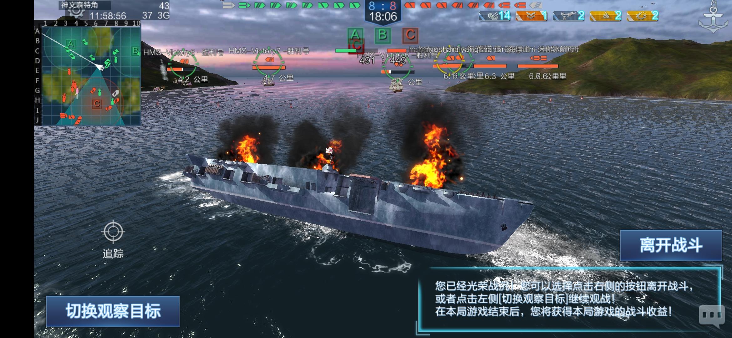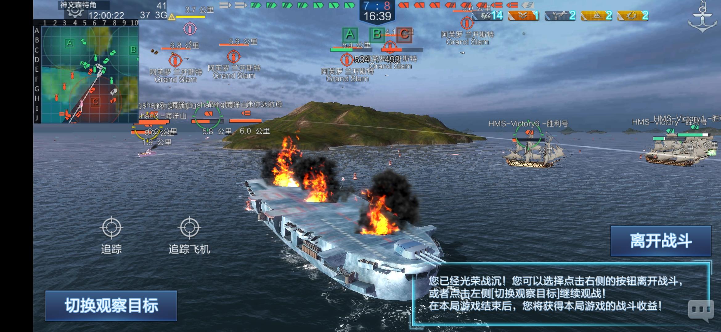 冰航母以为很强劲,结果嘛,两人双双被胜利号抬走!