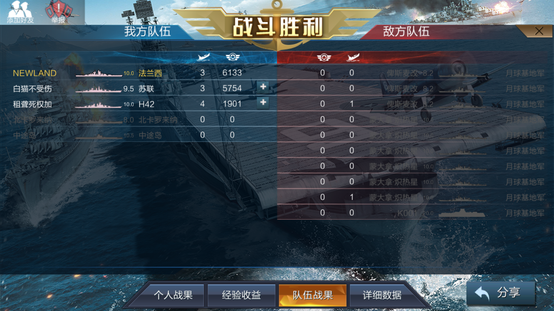 注:是人机,tm人头全被人机队友抢了,核心就黎塞留北卡爆了,这局才2000经验。。