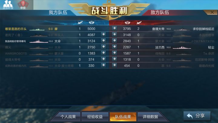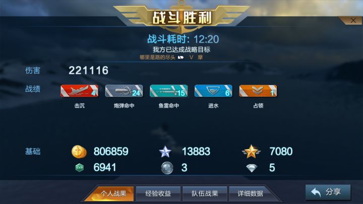 两天两把排位5000分不得好好纪念一下摩耶排位太有乐趣了,运气不好打满场一发鱼雷都中不了,运气好了闭眼打出去的都能中。不过一场命中15发鱼雷也真的是史无前例了。