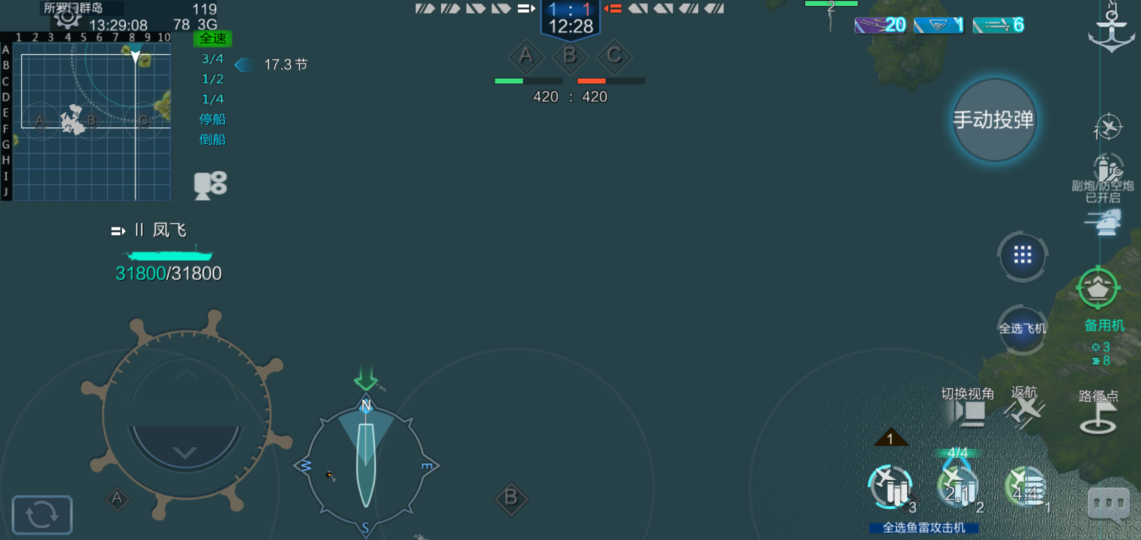 两方队友全死,航母用副炮打