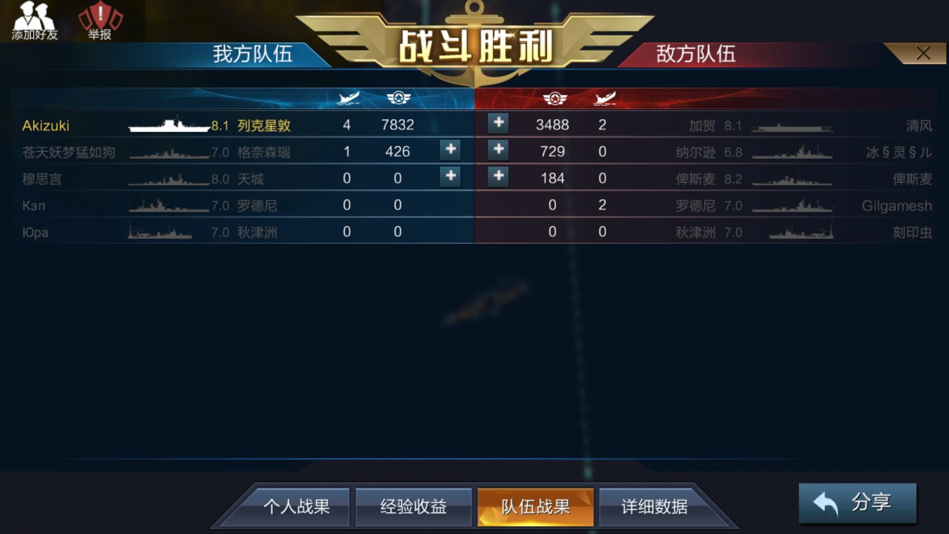 对面加贺大概是绝望地看着自己的92个王牌小伙子接连长(xia)眠(hai)海(wei)底(yu)的,列太太的博福斯和侍卫们怎么会允许你接近她高贵的身躯呢?(滑稽)其实我一直没理解我们家两艘战列是怎么五分钟内归西的(好像格子是被ai秋津洲叠水漏死的2333),最后不得不一人单挑四艘敌舰,好在赢了,最后还强行救下试图用仅剩一组煎包自杀的加贺,对面加贺也很自然地以身酬答啦,快来夸我(理直气壮)个人匹