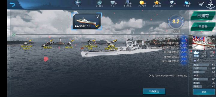为了缓解8.2权和9权巡洋的缺少新购进公主和关岛(给你游续命了),另外我的转化率也终于破百咧!