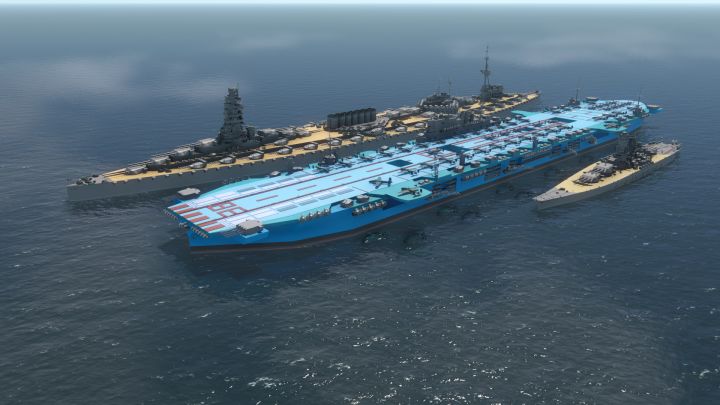 模型质量完全不如003,六边形雷达罩,前面两座RIM-116直接两个黑圆柱体,后面两座海麻雀发射箱直接两个方块画上三个圆,海麻雀这东西中途岛1991上都有现成的,模块精度对比003更是没的比,直接一整个方形,好歹是4000r累充档的船。
