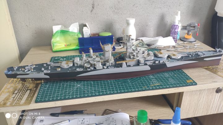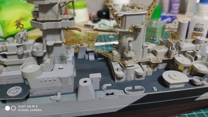 算是完工了,但也仅仅是做完了,拉线做旧什么的一个没有搞,不想动了,这套做着太难受了,蚀刻片硬的要死,和板件的匹配度也有问题,细节我只能说是有,但不多,还有这个鬼涂装太要命了,遮盖地狱,能从早上8点一直干到晚上8点(最后效果还可以,这样了我也不想动了,威斯康星该动了,没有做多少,但只能说这东西细节太牛逼了,哪哪都是细节,后面做到一定进度再单独发个贴说一说,看两个月能不能整完吧(