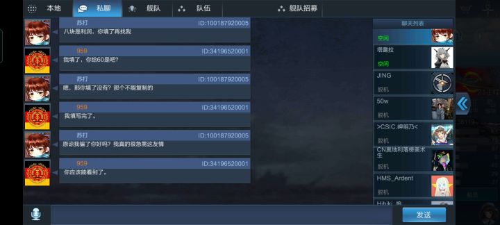 ID100187920005(苏打)在游戏里有虚假诈骗行为,我用了唯一一次要想把机会填写了他的id,并没有得到他说的报酬此等虚假言论在公屏往复出现破坏游戏内良好风气。我有截图为证。