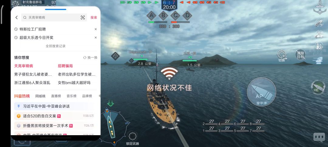 不知道大家有没有遇到过啊 本人小米k50 (2023/1/24购买)玩其他游戏.偶尔.会卡顿 但是玩这个战舰联盟经常性(一天有时候会出现四五次)断网 就是转向加减速没反映(卡了能一直开炮也不知道打没打出去 ) 今天第一把玩h39因为已经5km打近战我要放鱼雷 [到目前一切正常]但是安了没反应 我要转向也莫名转向没反应了 我才意识到又卡了 就这样眼睁睁看着自己(几乎满血)和别人(2/1)撞了 气死了
