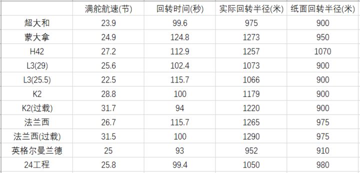 一、众所周知舰萌的纸面转向半径并不是一个准确值,实际转向半径会随着航速的增大而增大。根据此生的说法,纸面半径是“某一航速”下的转向半径,经过测试并试图寻找规律后发现,这个“某一航速”似乎并不是一个固定航速,而实际转向半径也不是一个与航速直接对应的简单函数(有未知变量的影响,推测可能与舰船模型长度有关)。另外,测试本身没有任何技术含量,只需要了解舰萌中的航速比例尺,开自定义房间原地转圈并计时,
