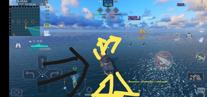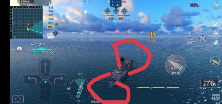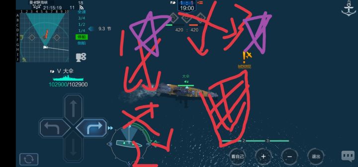 如图一,这是排位中护航巡洋常出现在战列附近的位置,其中1和3的位置请各位巡洋玩家千万不要去!!!因为这会直接卡死bb的走位!