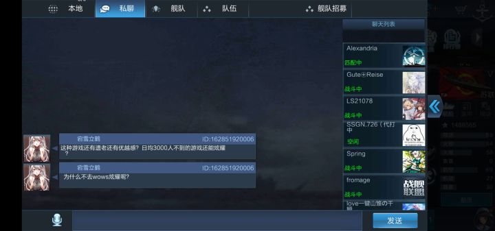 3打3残局对面三条战列血量都不健康,我们2战列1巡血量都还行。然后这遗老搁那见人拖刀开bb报团,我是真的服这种天才,还说我都没有看到你在带,乐死我了我这近20w输出假的?输出是假的?