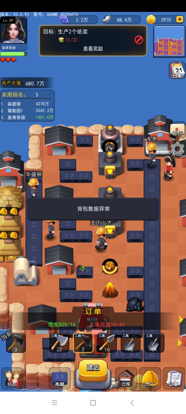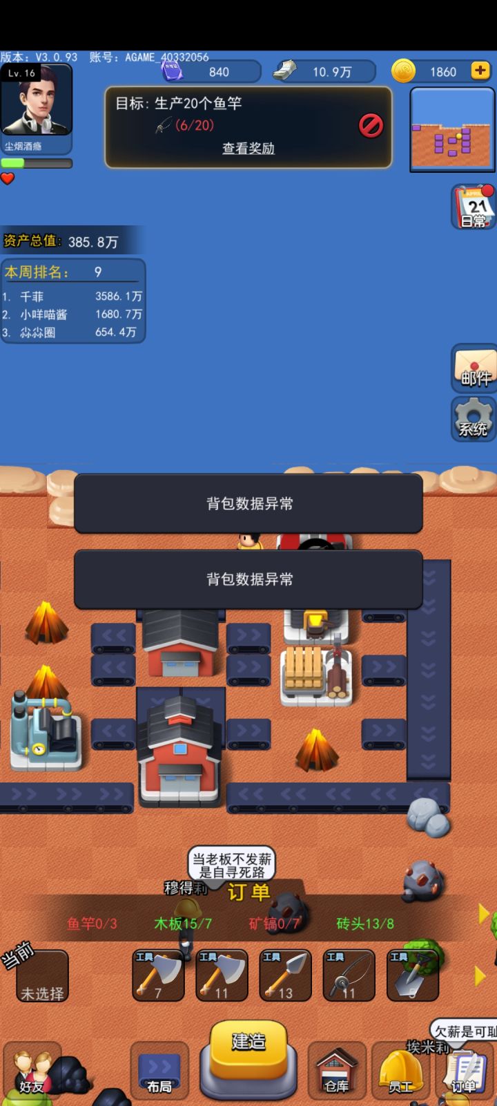 更新之后,建筑里明明有多的几个材料,够做一两个产品,但就是不做了,建筑里材料一直闪,还显示背包数据错误你要告知材料不够就在建筑外面搞个感叹号啥的好吗,在里面闪有啥用,而且闪完之后,会吞材料,虽然只有几个,但是很不爽啊。而且对于一些本来就不多的材料被吞了就更不爽了了另外我想知道工人消耗感觉的数量是怎么算的 我做了290+的镐子 睡一觉起来大概7个小时一个没剩 重点是矿也没涨多少啊