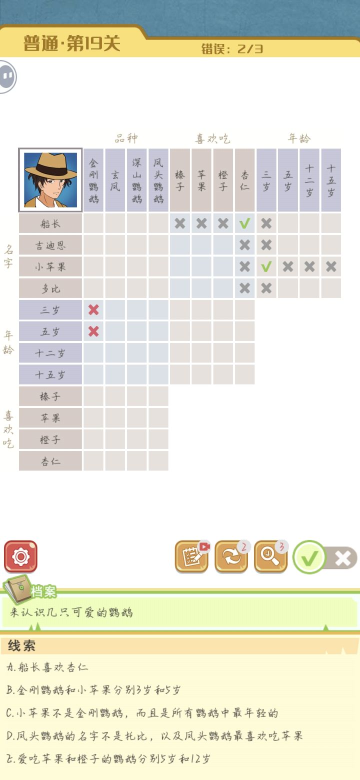 b点说金刚鹦鹉和小苹果分别3岁和5岁,但是金刚鹦鹉3岁是错的