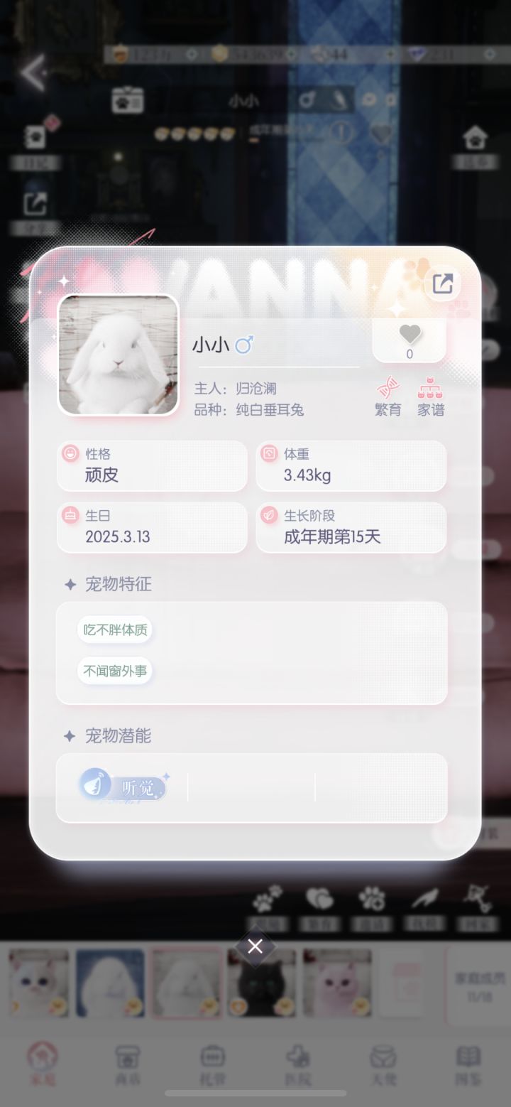 想给我我家小公主找个小王子,但是可能因为品种太普通,在世界上蹲了好久没蹲到,希望各位姐妹们能接受她。就希望来个帅气点的小王子,不要小八嘎之类的求求了。而且我不会弃养猫猫的,就算最后配出来不怎么好看,我也会把他/她养到老的。从宠物系统出来到现在,也就养了四只猫猫,有一只已经是天使了,还有一只也快到天使了。真的很希望有姐妹看上我的猫猫。#以闪亮之名 #