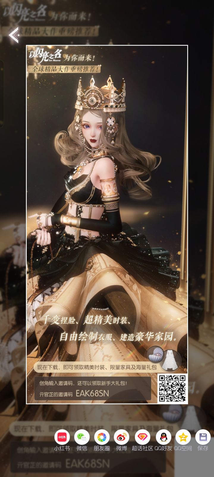 #以闪亮之名变装物语 因自由而闪亮,一起在《以闪亮之名》手游中做理想生活的设计师吧!输入邀请码可获得新手礼包哦~我的邀请码:RGG6RMR