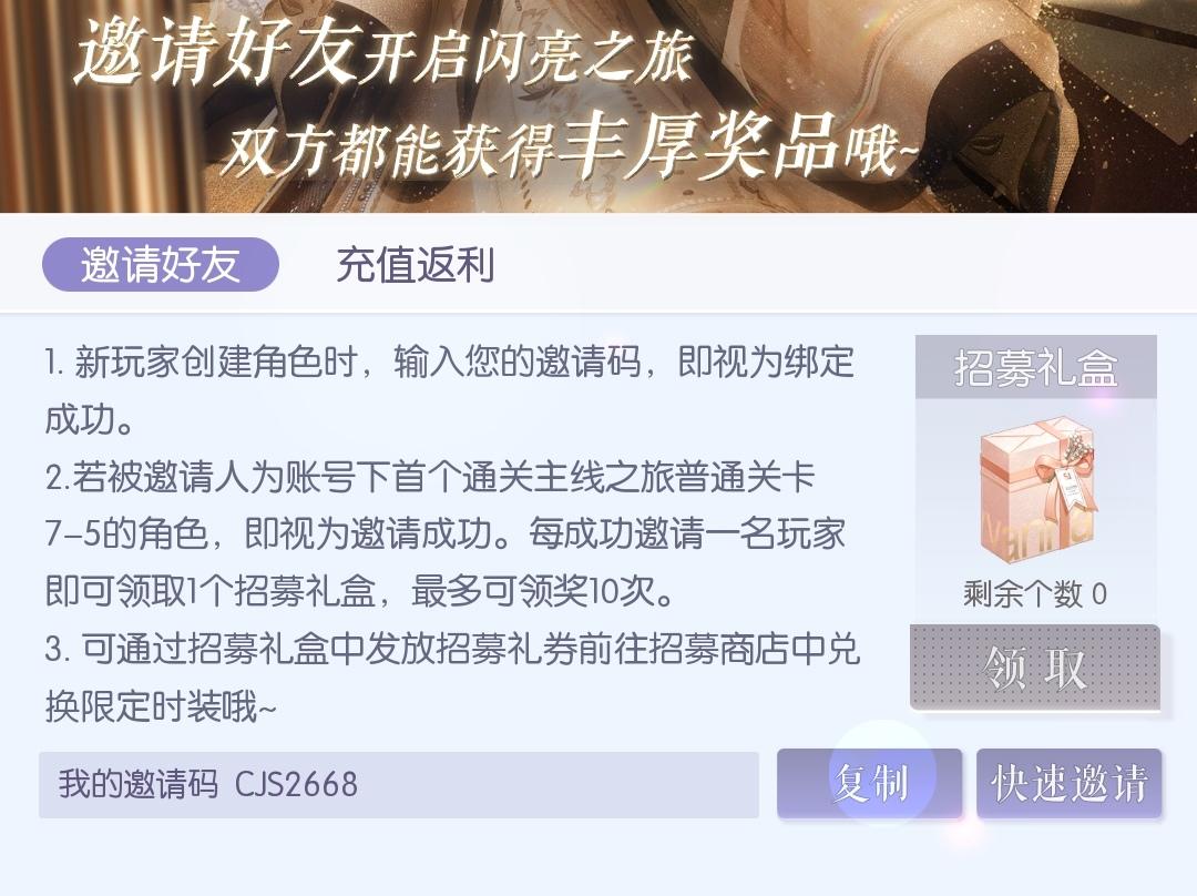 邀请码:FDKXV新用户可以填一下,就在捏脸界面左下角WEAREYSSTARSLZM66SLZMQZSLZMDY还有兑换码可以使用非常感谢