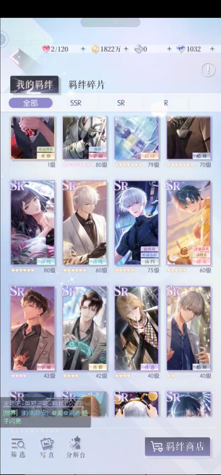 今天把几千的色卡花完,只剩下华丽还的一个了,没抽到ssr和六星裙子,有一个满级满心的一命sr和开满千幻的sr华丽裙。花完几万的协会积分用在华丽课程上,不知道有什么用,顺便上了别的课,花了差不多一千万金币尽力了,没有羁绊升级材料了现在估计没办法提上去了,等下个赛季看看能不能拉满求助一下,下个赛季怎么升华丽。说起来下个赛季就开学了,已畏惧。#游戏种草计划#游戏安利#游戏推荐#游戏讨论#游戏资讯